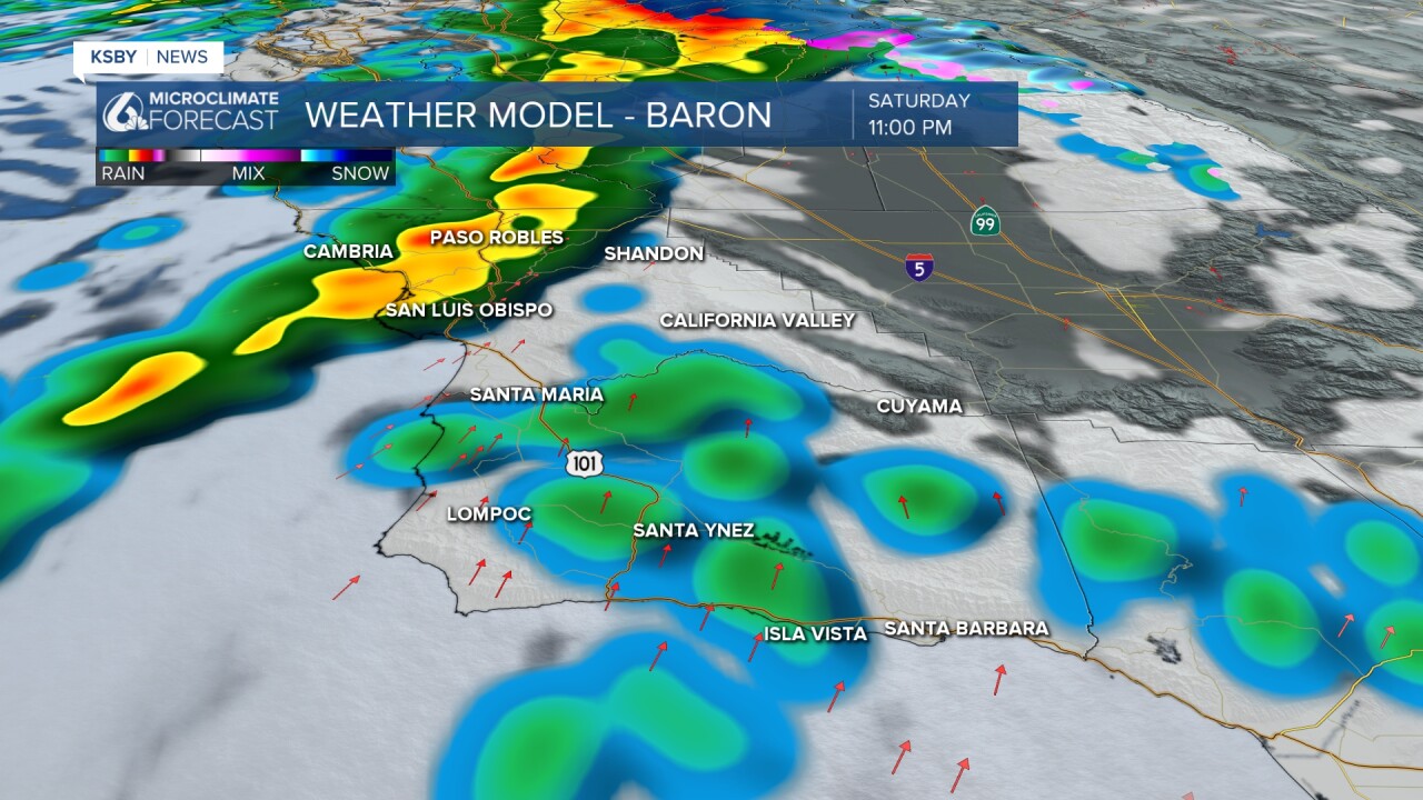 Saturday night a second cold front will reach the region and bring us the greatest chance for severe weather. Thankfully, recent model runs show it getting here a little bit later than initially anticipated. That is good news for the Poly Royal festivities Saturday night, as most of the storms will pass through after that has ended. Penny-sized hail, heavier downpours, and strong winds are expected. The chance is minimal, but there is the possibility for a severe thunderstorm warning as the front pushes through.