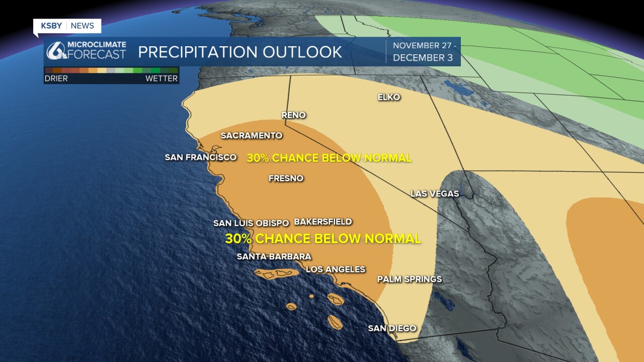 Even into the week of Thanksgiving, we are looking at a dry pattern with temps at or above normal.