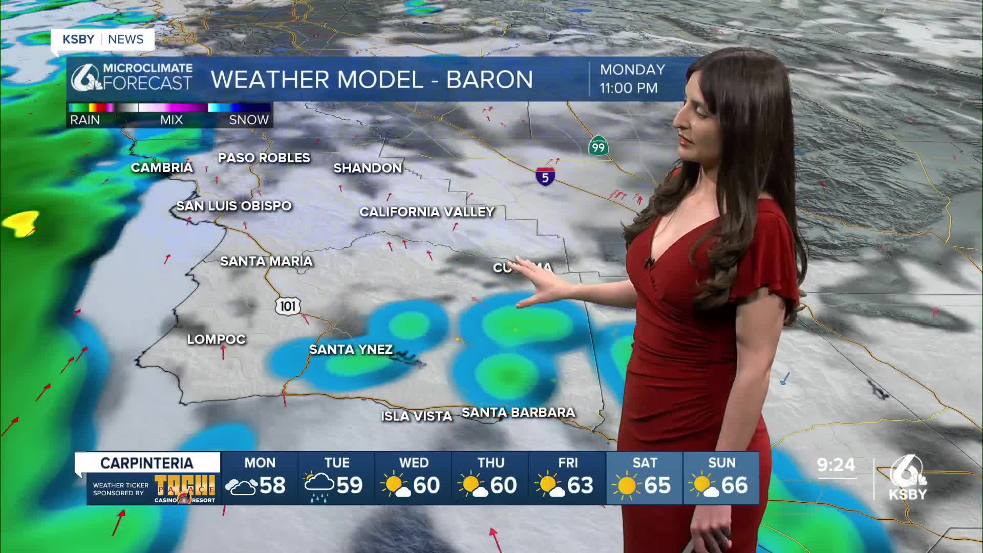 It has been a rainy weekend for us! Here are what conditions look like, close to 4 PM. The bulk of the rain, which started this afternoon, has now moved from San Luis Obispo County into the South Coast. As a result of this rain, Areal Flood Advisories were issued this morning for both regions. These watches are set to expire today at 6:00 PM.