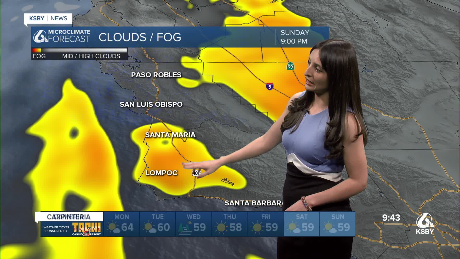 This Monday, we'll experience a minor increase in our temperatures. For example, Santa Barbara's Sunday high temperature was 65 degrees, and on Monday it will be 68 degrees. This warm-up will be short-lived.