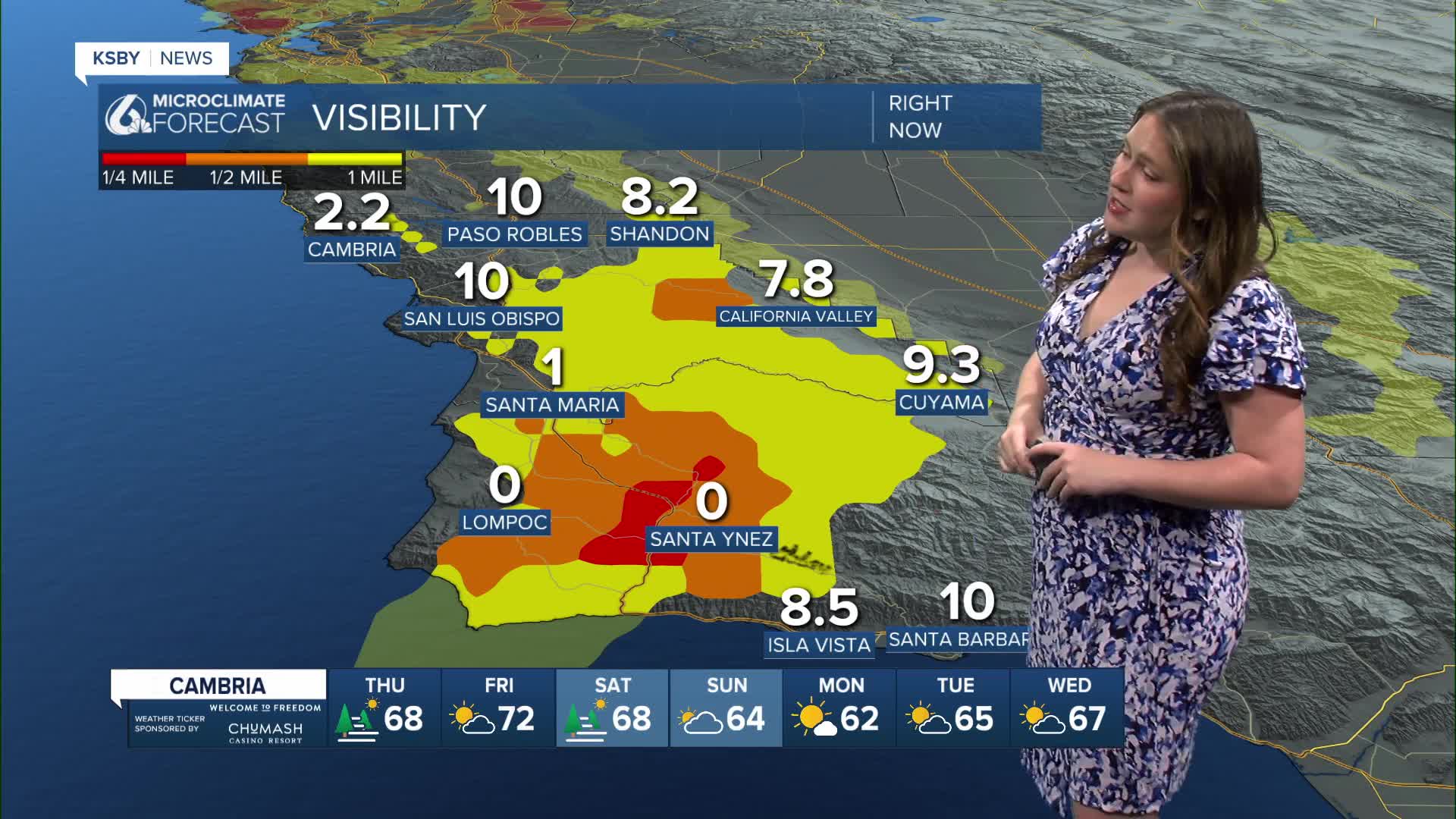 As we kick off the morning, we have another day with some dense fog in our Coastal Valleys. Here is a look at the fog as of 6:30 a.m.