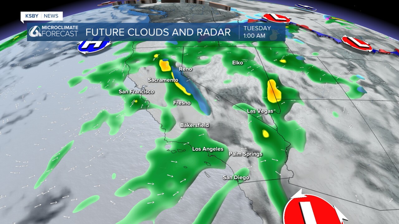 Below is a snapshot of early Tuesday morning with some rain chances ramping up around the Central Coast!