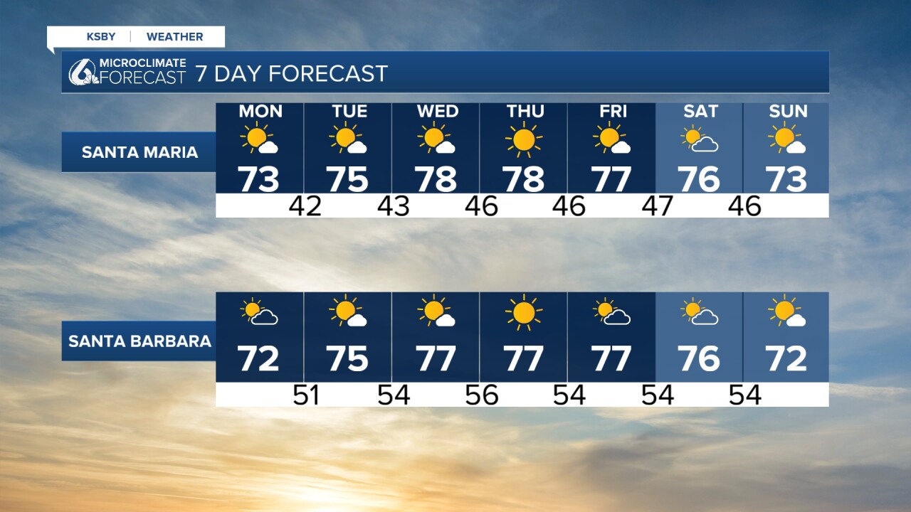 Nuestro pronóstico del tiempo confirma condiciones cálidas para el condado de San Luis Obispo. ¡Espero que aprovechen estas condiciones favorables!