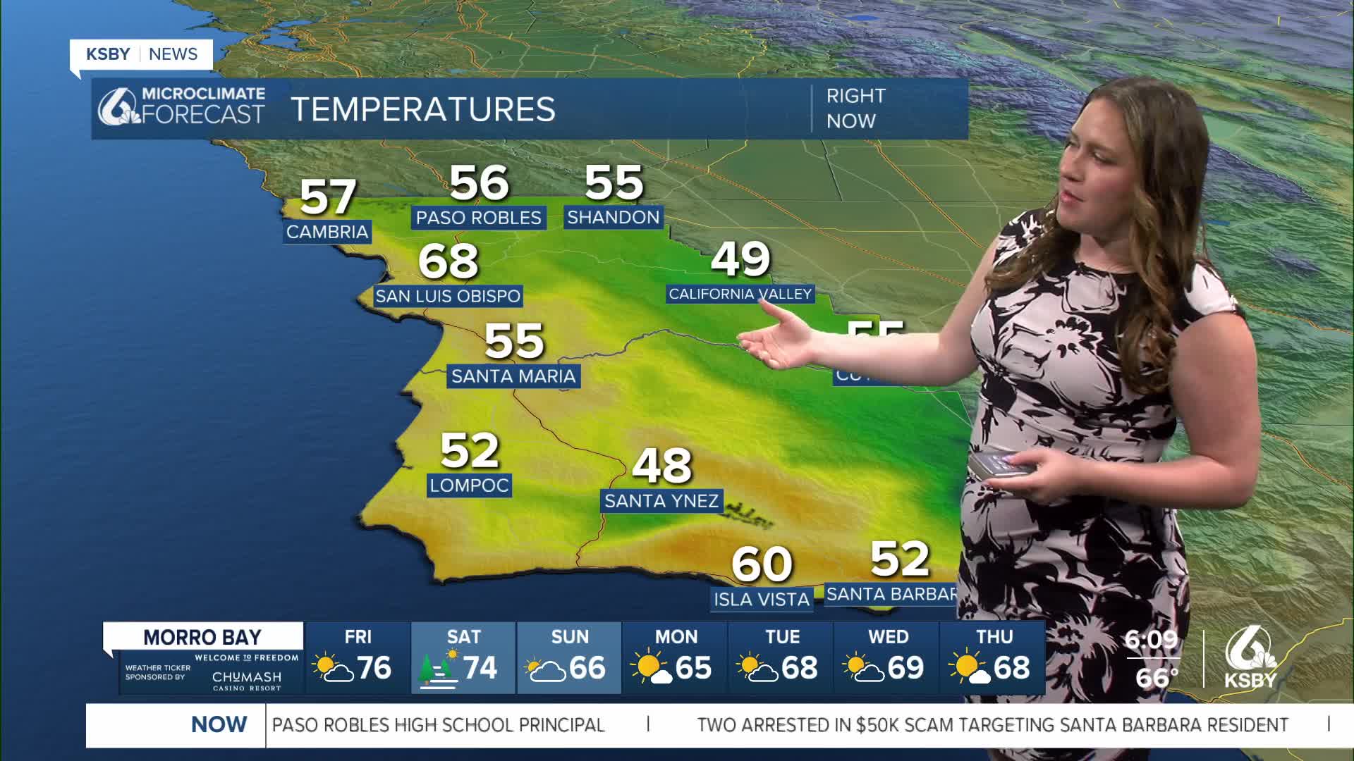 Early Saturday morning, some onshore winds will kick in and bring back fog across most of the region. This will limit morning visibility but will clear out quickly. The addition of this cooler and damper air will cool down daytime temps a bit but we will still stay well above normal for this time of the year.