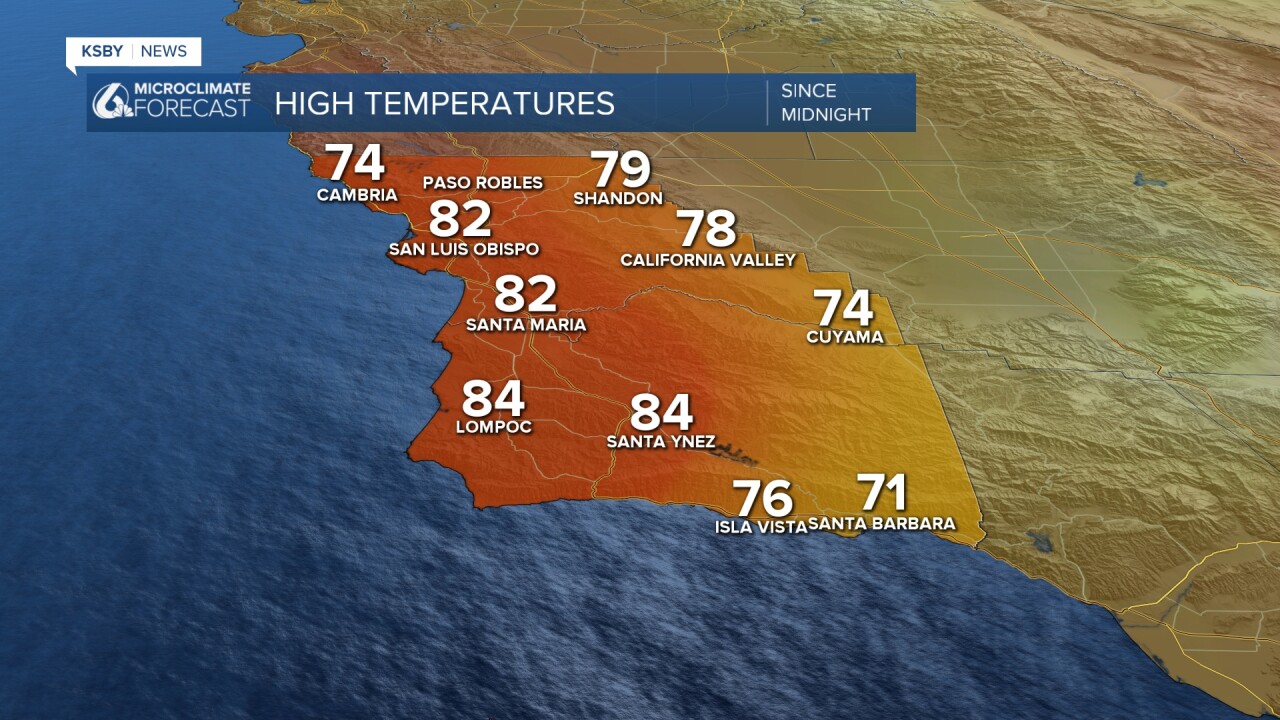 Thursday was a hot one across the region, with temps soaring 20 degrees above normal for this time of the year. That, paired with sunshine and strong offshore winds, made for a summer-like feel as soon as the morning fog cleared out. Here is a look at the high temps from Thursday across the region.