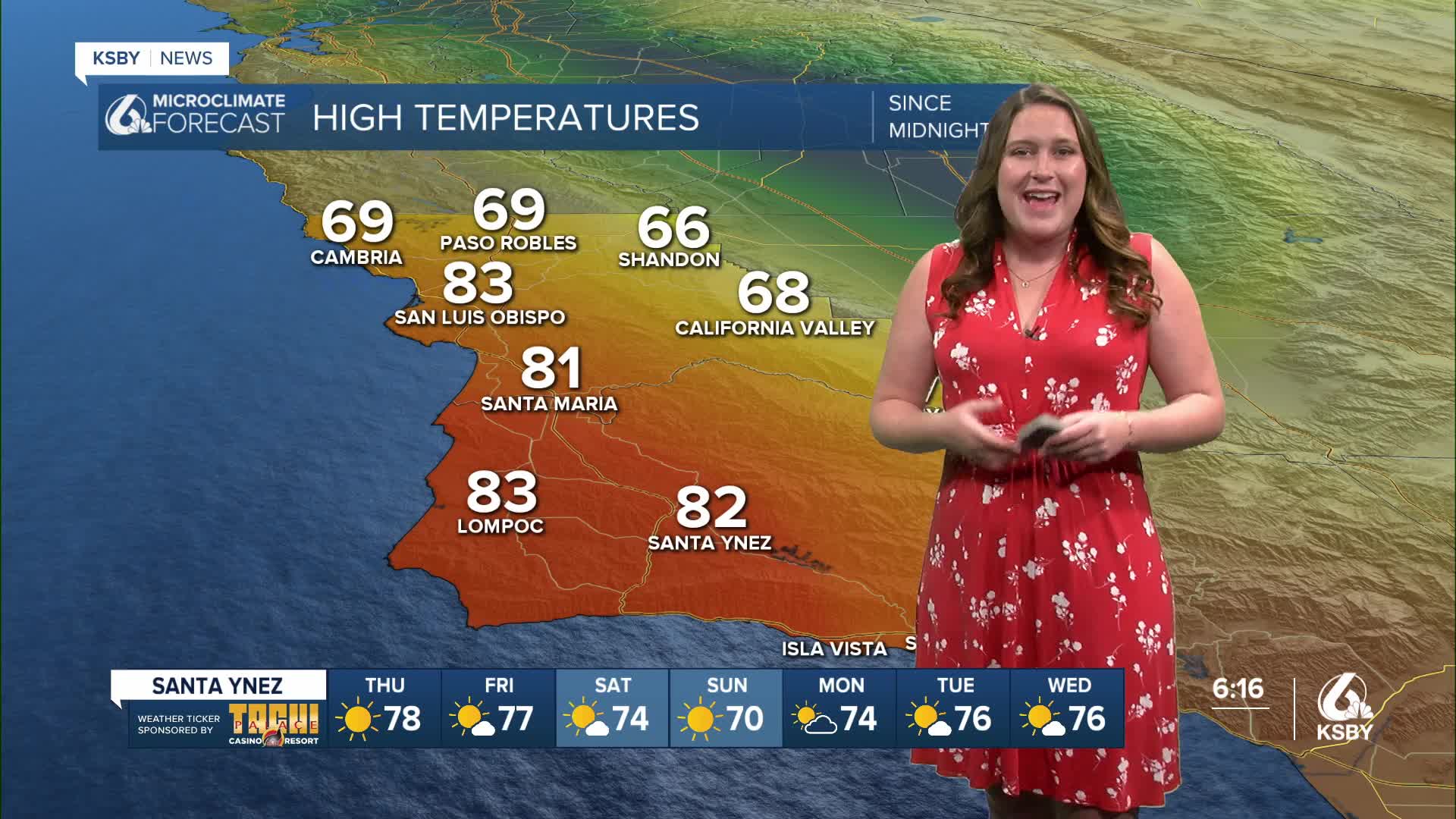 It was a warm, bordering on hot, day across the Central Coast with high temperatures climbing into the 80s for much of the coast.