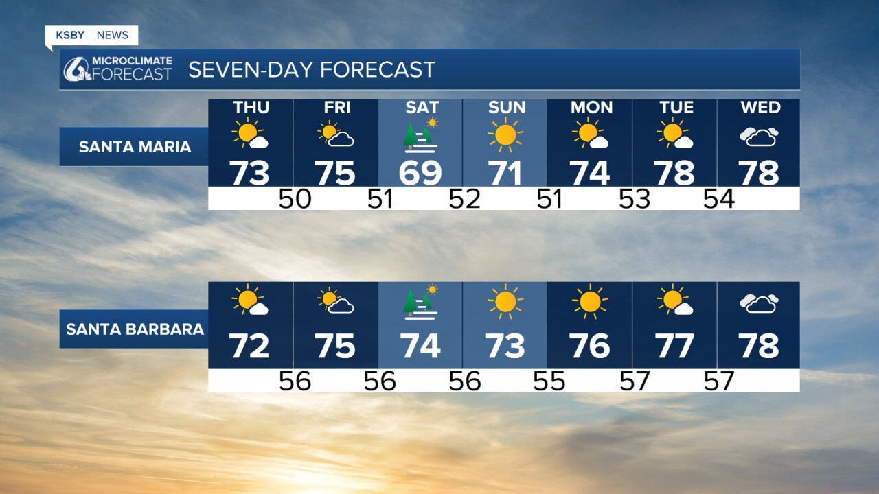 Saturday, a slight cooldown is expected. No worries with this, though, morning fog by the beaches and afternoon sunshine with temps just a few degrees below normal are expected.