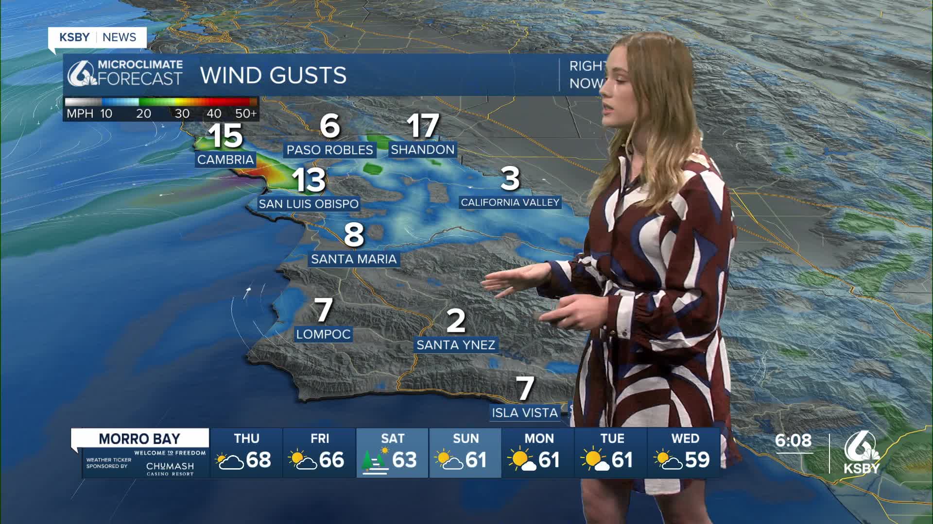 Temperatures across the Central Coast are going to fall up until Wednesday, where we'll hit the mid to low 60s.