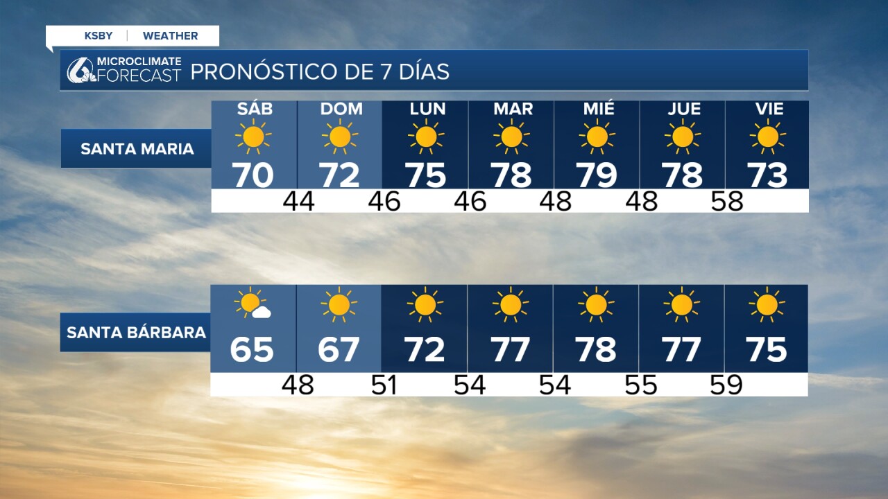 Santa María, ya está experimentando los efectos del cambio climático. Para el próximo miércoles, se espera que la temperatura máxima alcance los 79 grados. Hay una menor probabilidad de que algunas áreas alcancen temperaturas en los 80 grados.