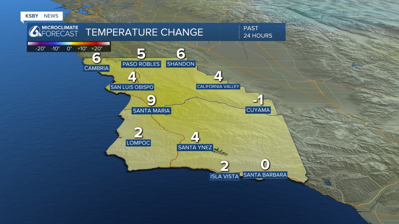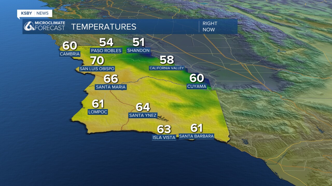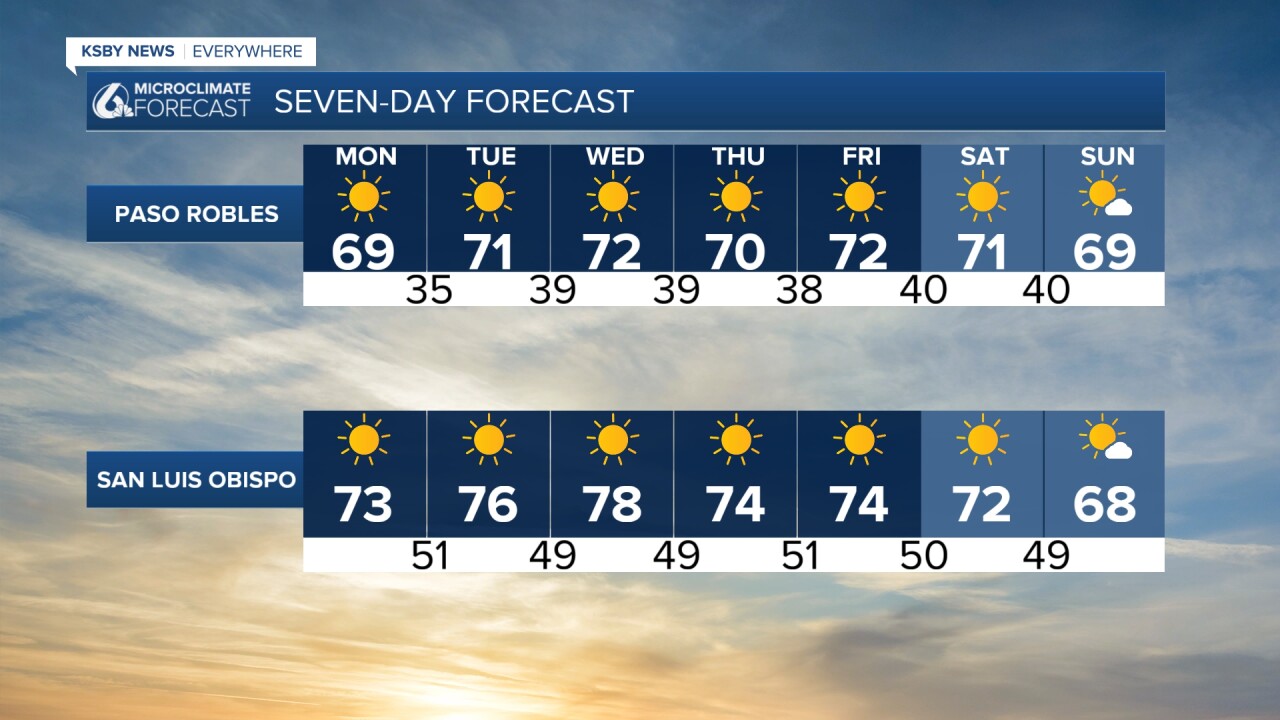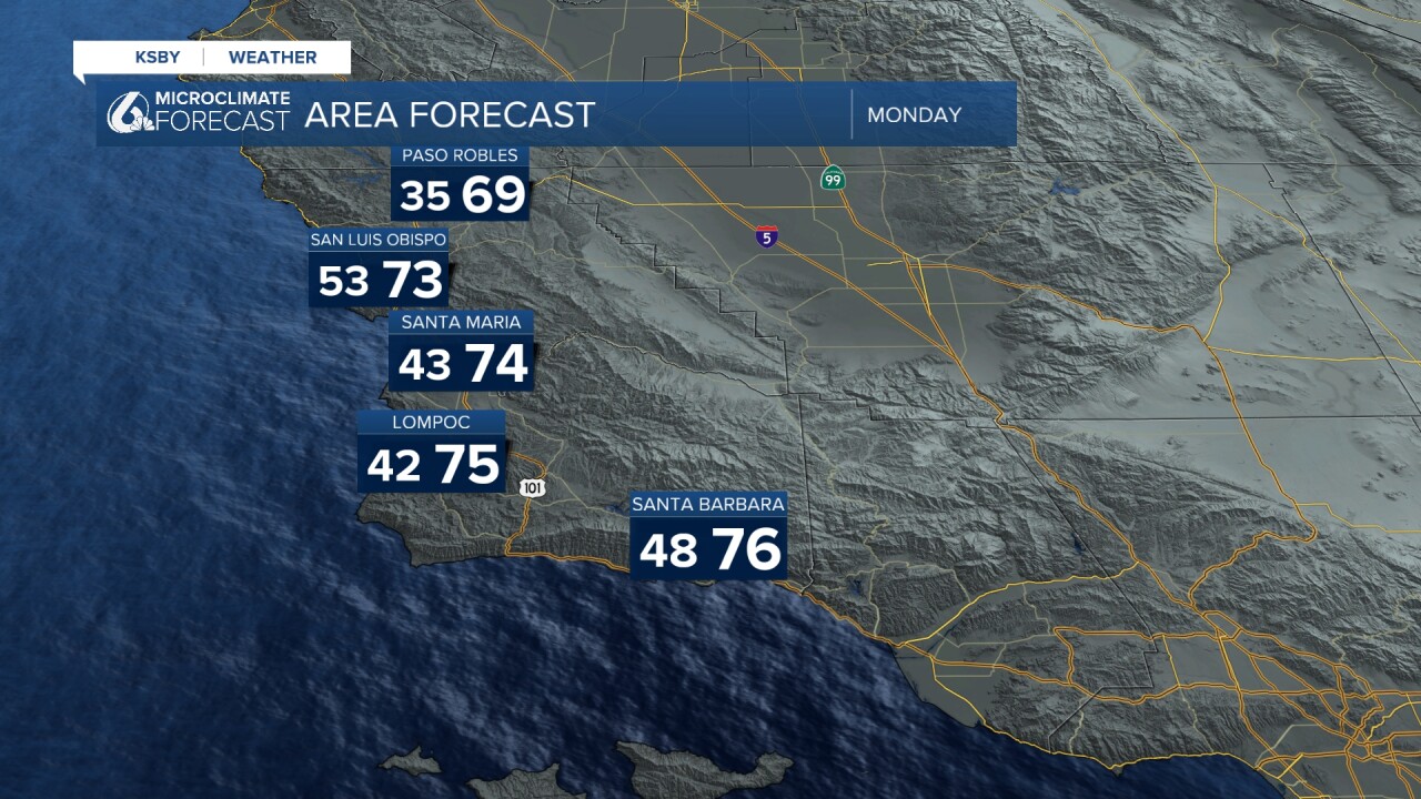 Here are the high temperatures we will be seeing across the Central Coast on Monday.