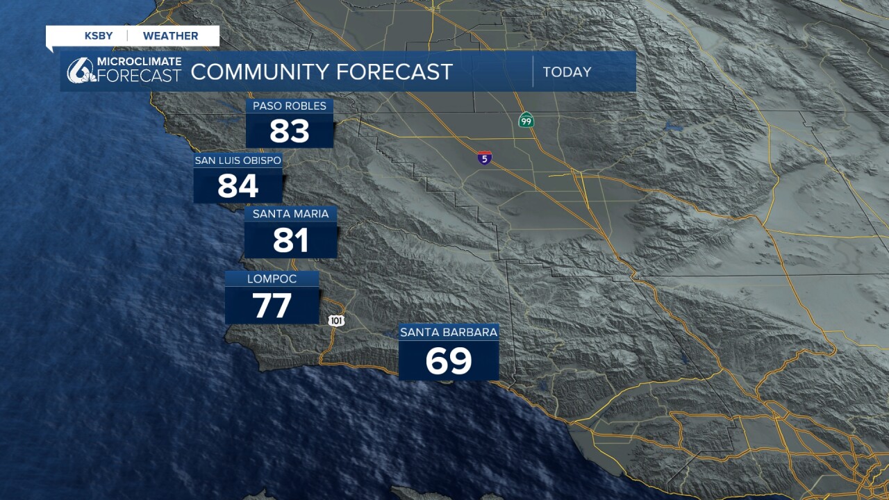 These are the temperatures you can expect for today. Several communities will be experiencing temperatures in the 80s range, with areas like Santa Barbara running a little cooler.