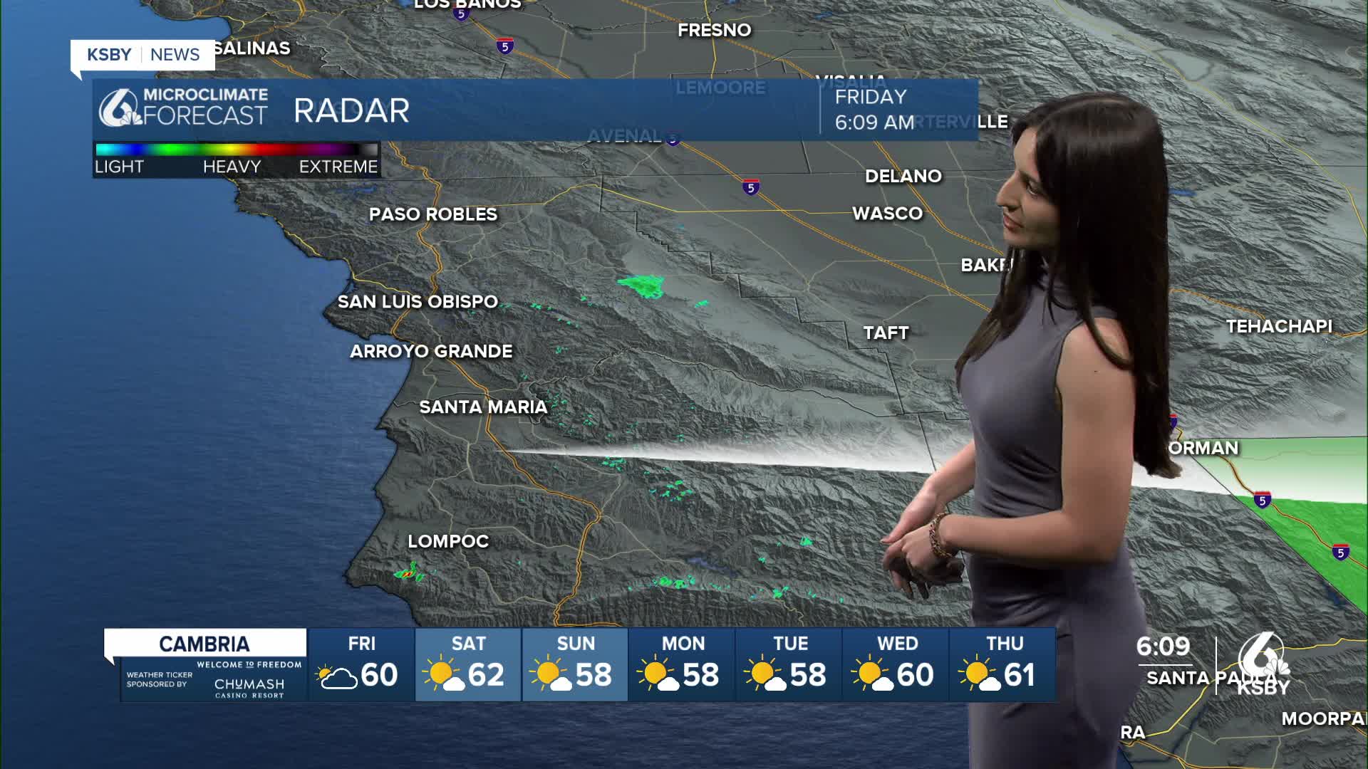 The south coast and some interior areas will continue to see some lingering showers this morning. For the rest of the Central Coast, this Friday will be pretty dry.