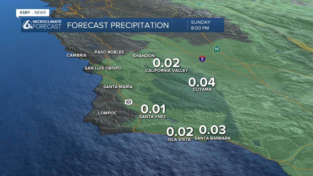 Here are some of the rain totals we'll be having today. Pretty much all hundredths of an inch! Most of the rain happening today will be taking place in Southern California. Keep that in mind if you're making the drive down south today.